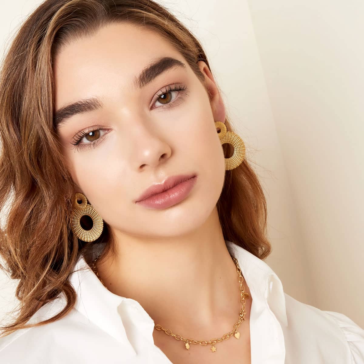 Hoe tof zijn deze gouden statement oorbellen! De oorbellen met print zijn gemaakt van stainless steel en hebben een afmeting van 4 cm. Statement oorbellen zijn perfect om enkel te dragen! Ook zijn de oorbellen goed te combineren met subtiele oorbellen! Ook verkrijgbaar in goud.
