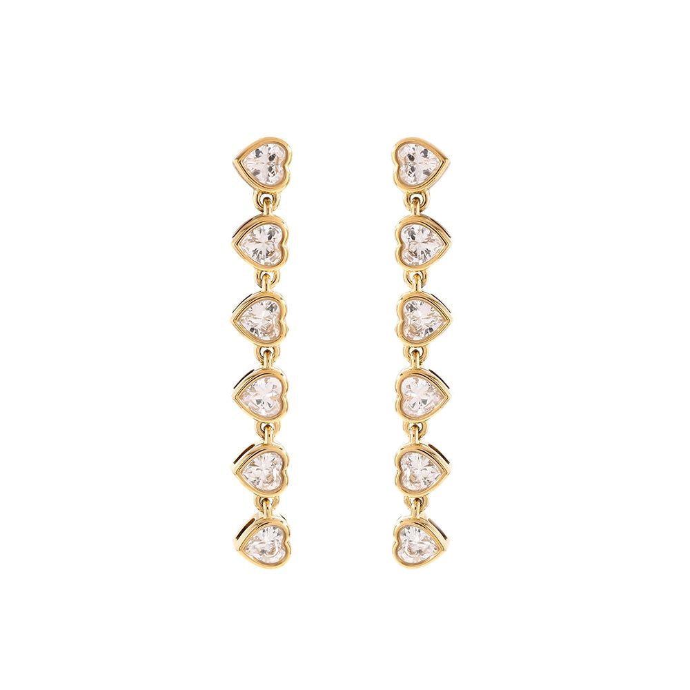 Hoe leuk zijn deze oorbellen? De oorbellen hebben hartvormige diamantjes. Perfect voor bijvoorbeeld Valentijnsdag of voor een feestje. De oorbellen zijn gemaakt van stainless steel en zullen dus lang mooi blijven. Voeg met deze oorbellen wat shine toe aan jouw outfit!