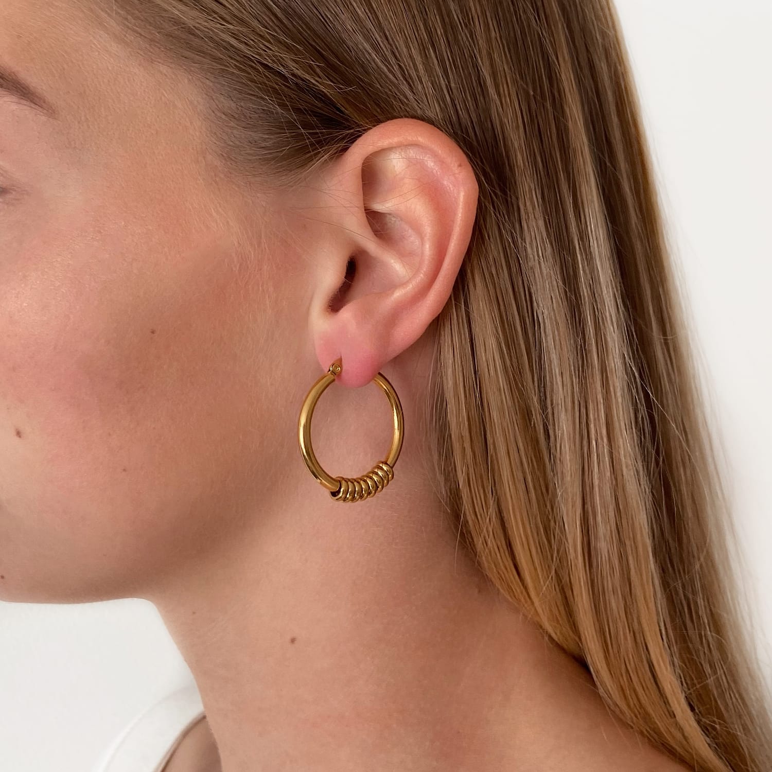 Deze oorringen vallen goed op! De oorringen zijn een groter formaat en hebben een chunky look. De kleine ringetjes eromheen maken de oorbellen echt uniek. Je kunt de oorbellen combineren of los dragen. Deze oorbellen zijn gemaakt van stainless steel en verkleuren dus niet! Shop de oorbellen in goud of zilver.