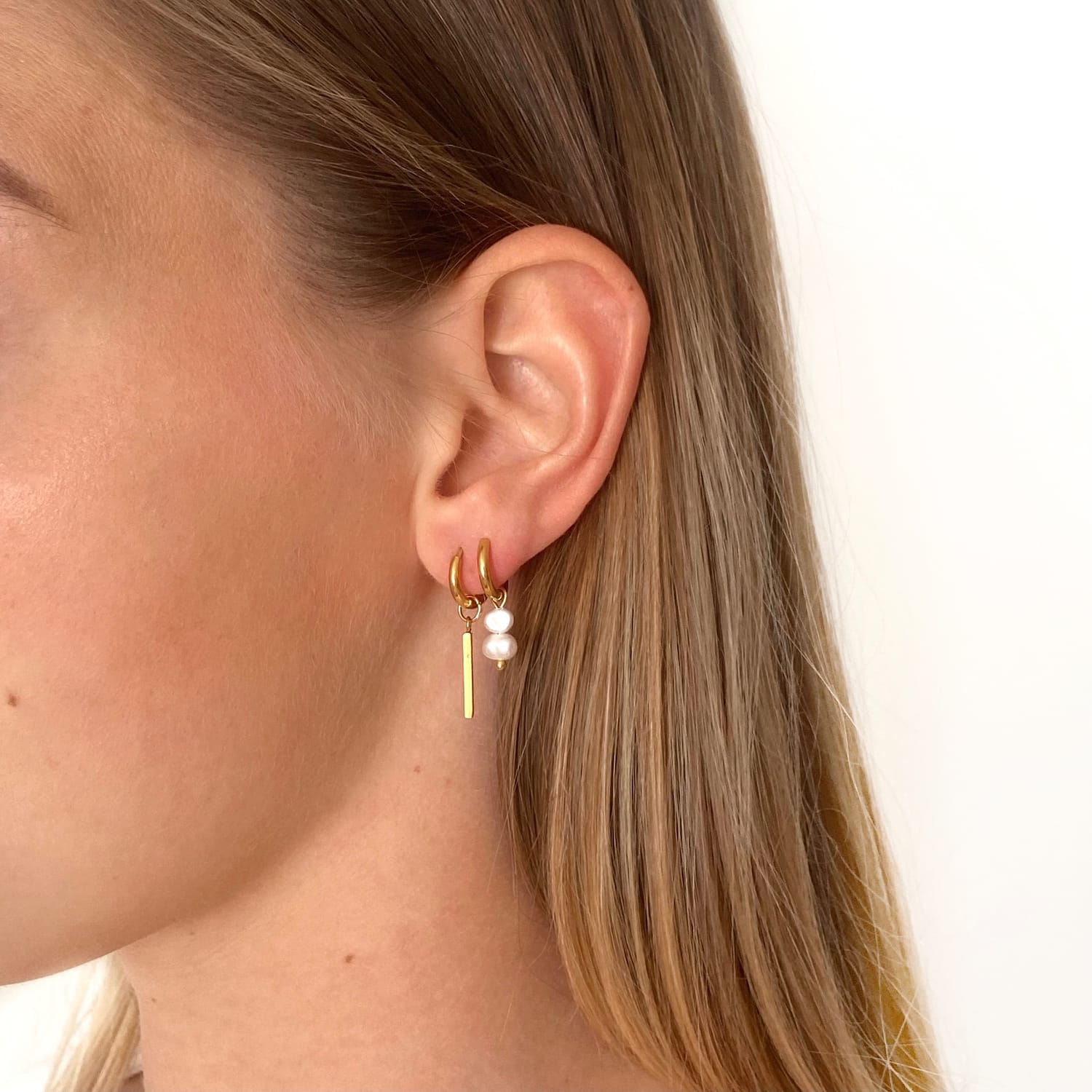 Deze oorbellen zijn een essential voor de zomer! Deze oorbellen hebben als hanger twee zoetwater parels. Geef je earparty een unieke look met deze leuke oorringen. De ringetjes zijn gemaakt van roestvrij staal en verkleuren dus niet. Shop de oorbellen in goud of zilver.