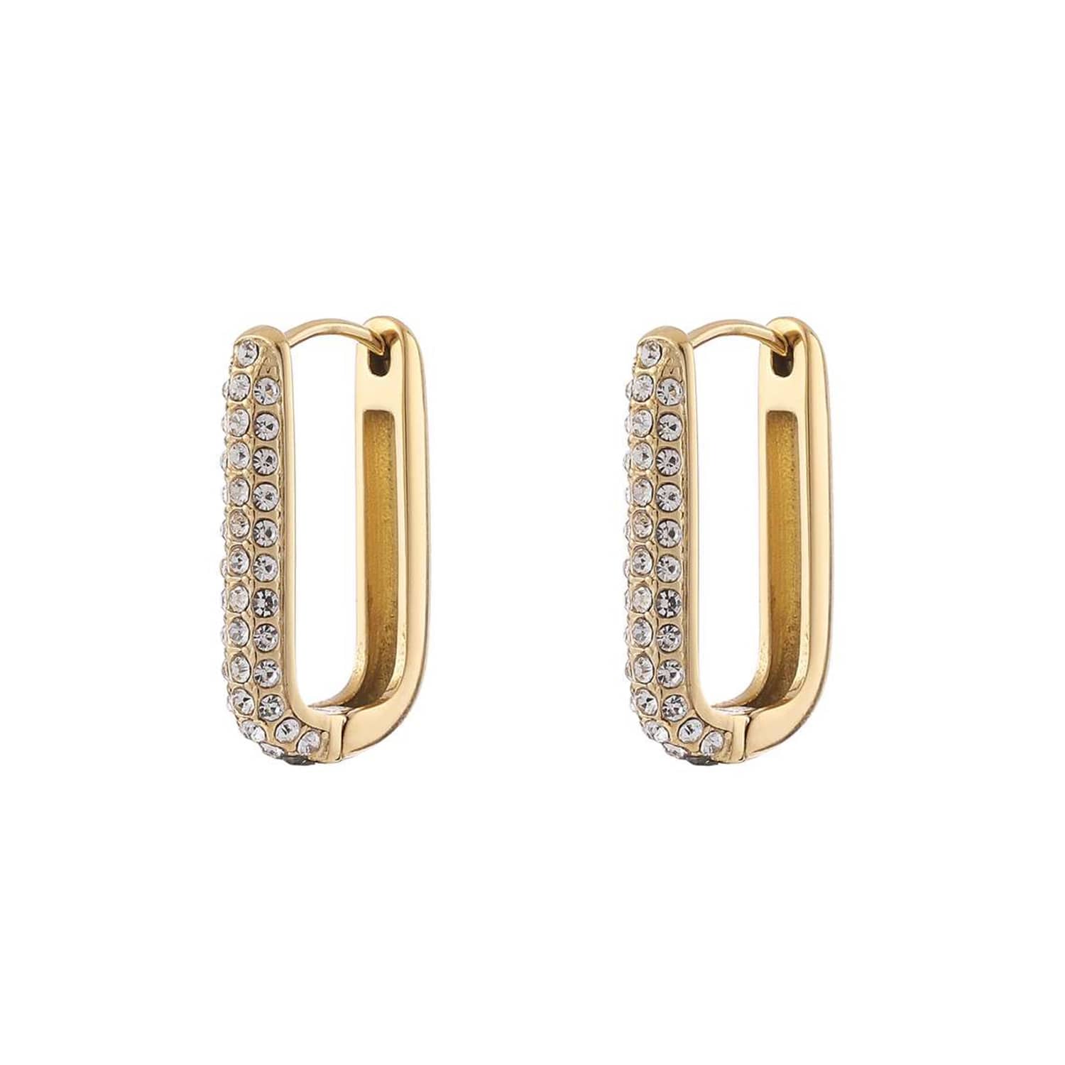 Deze oorbellen zijn gemaakt van stainless steel en blijven dus extra lang mooi. De oorbellen zijn voorzien van zirconia steentjes en geven jouw outfit een extra shimmer! Perfect voor een feestje. De oorbellen zijn ook te verkrijgen in zilver.