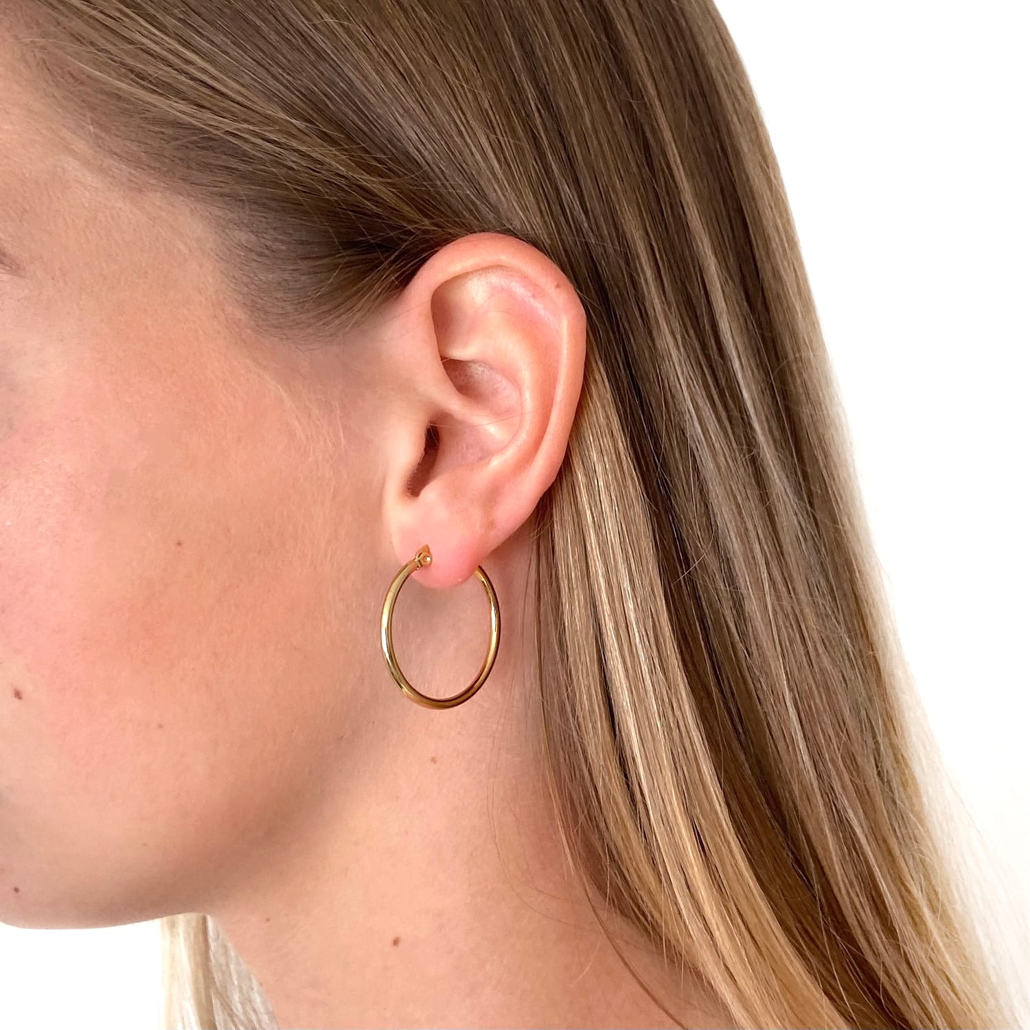 Deze mooie simpele oorbellen zijn perfect voor elke outfit. Ga je voor een casual outfit, of ga je een avond uit? Deze wat grotere hoop maken je outfit af! De oorbellen zijn gemaakt van stainless steel en verkleuren dus niet. shop ze in goud en zilver.