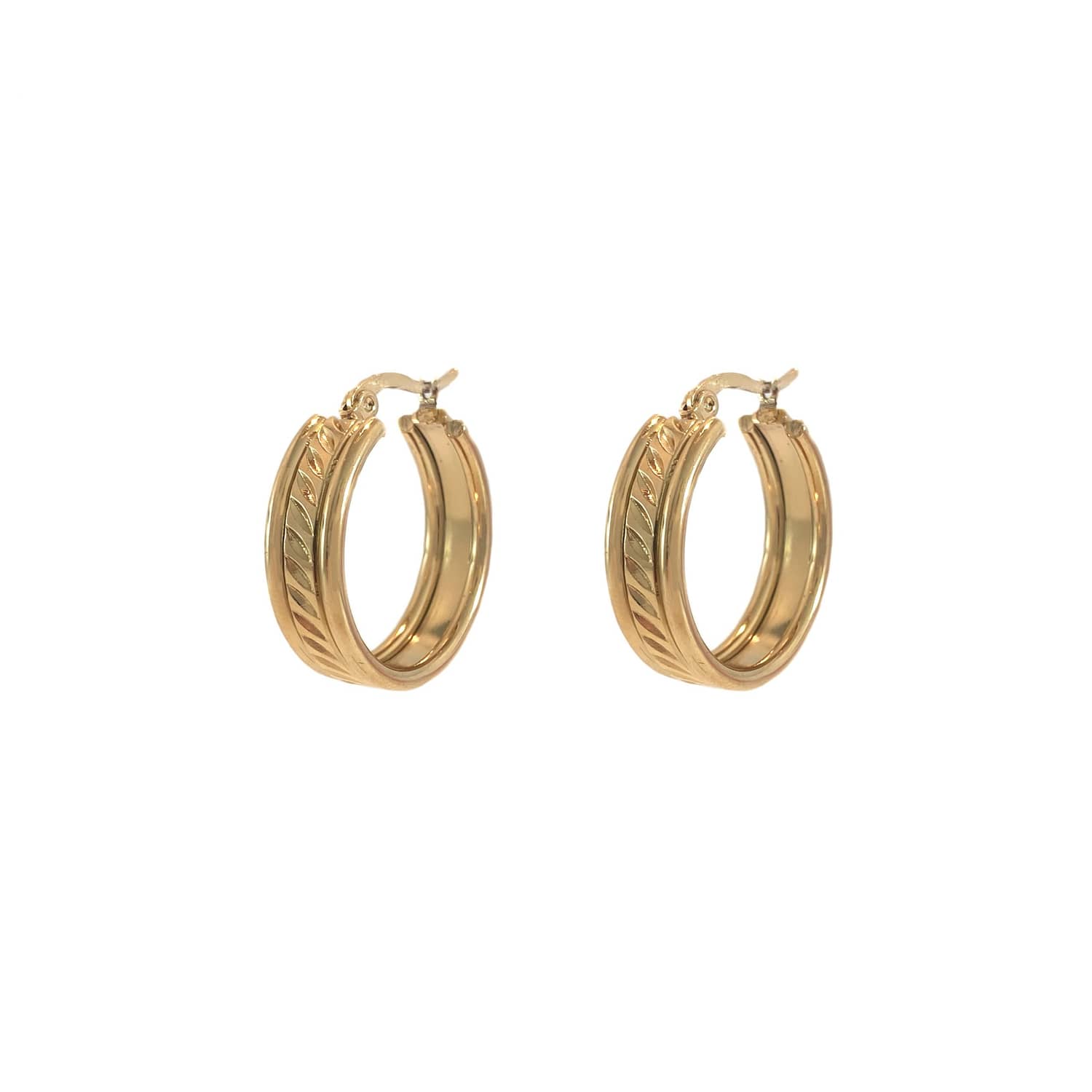 Met deze oorbellen val je op! Deze super leuke oorringen hebben een brede, platte vorm. In de oorbel zit een prachtig reliëf wat de oorbel heel uniek maakt. Een echte eyecatcher dus. De oorbellen zijn gemaakt van roestvrij staal en verkleuren dus niet. Je kunt er dus gewoon mee douchen.